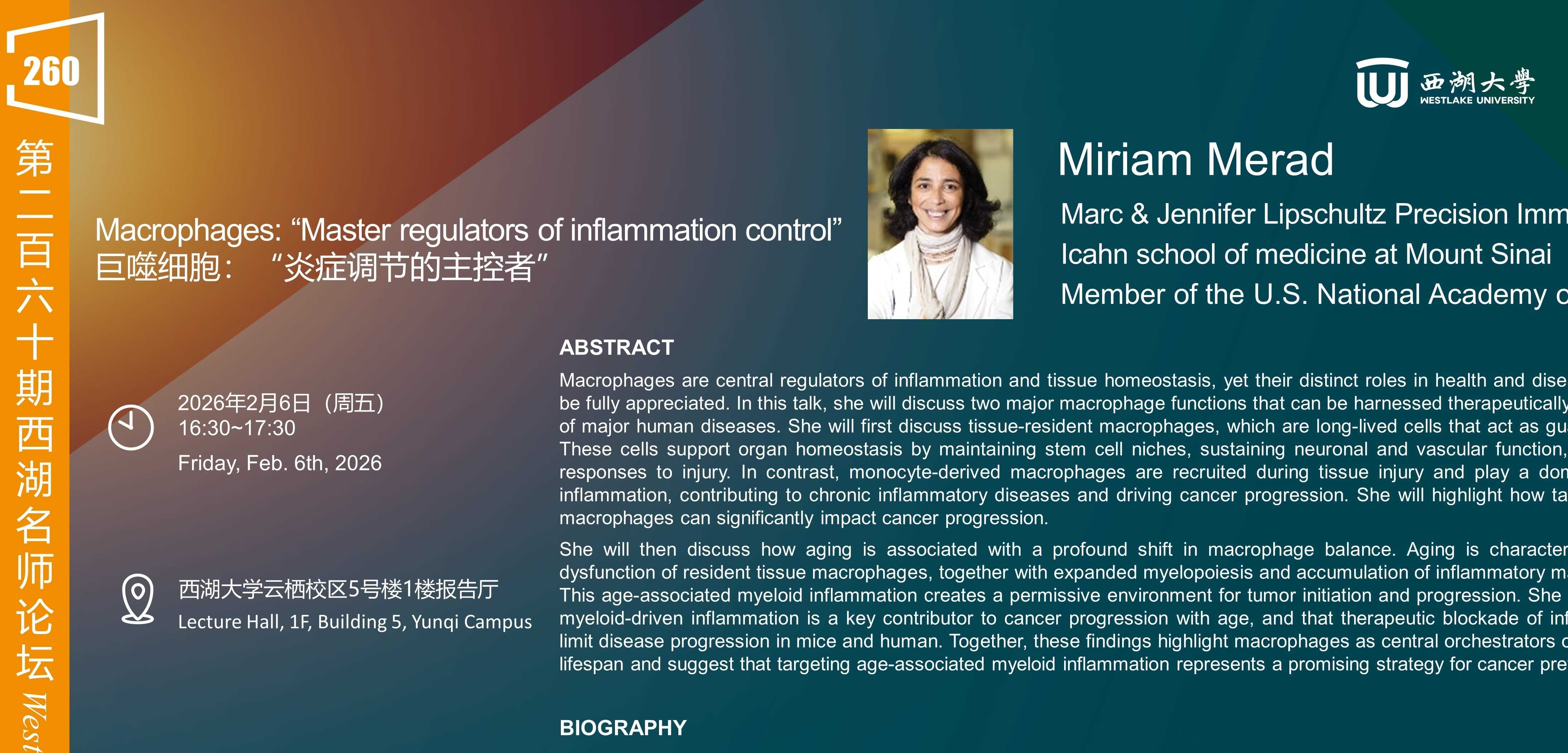 西湖名师论坛第260期 / 西湖医学大讲堂第24期 Miriam Merad: Macrophages: "Master regulators of inflammation control"