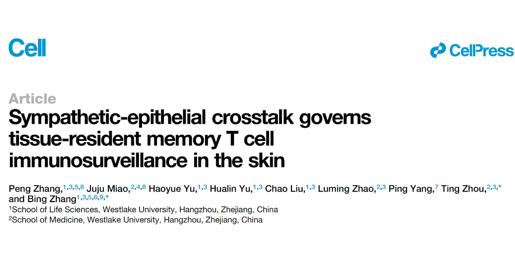 CELL报道|西湖大学张兵/周挺团队合作揭示交感神经通过上皮调控组织驻留记忆T细胞行使免疫监视
