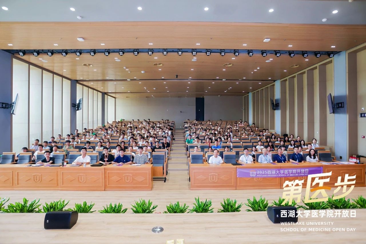 8月26日上午,阳光炽烈。西湖大学医学院迎来了成立以来的首场开放日活动。云谷校区教学中心的屏幕亮起,柔光映在一张张年轻而专注的脸上——2025级本科新生们坐满了教室,空气里跃动着兴奋与期待。