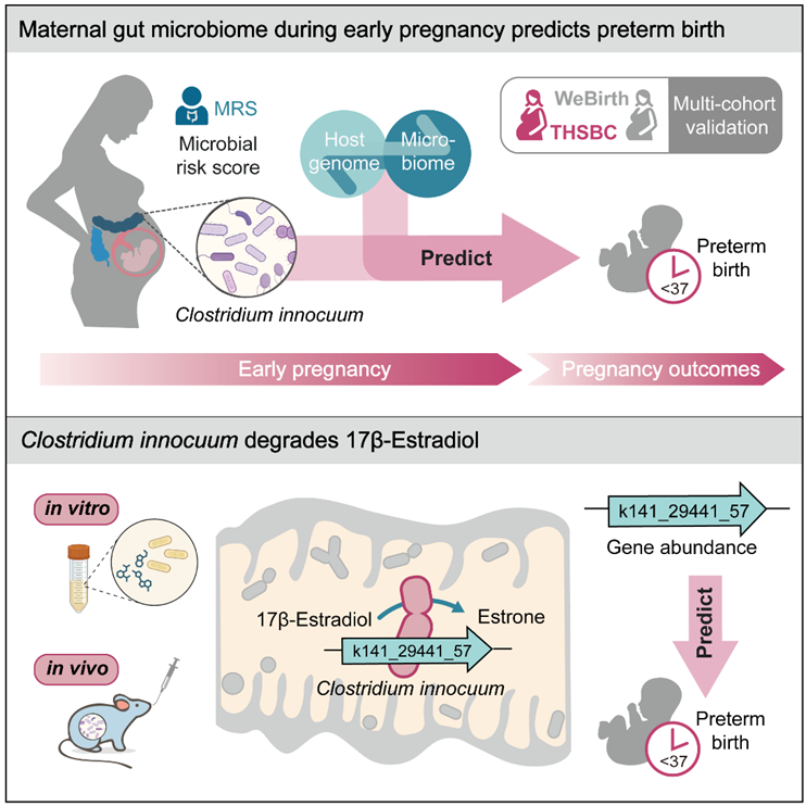 该研究是迄今最大规模的孕期肠道微生物组研究之一,揭示孕早期肠道菌群特征与早产风险的关联,发现孕早期的无害梭菌及其雌二醇降解基因能够潜在预测早产,这一发现为早产的精准预测和个体化防控开辟了新的方向。