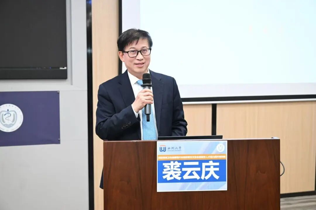 西湖大学峰颖讲席教授,副校长兼医学院院长董晨则亲切欢迎了各位学员来到充满创新活力的西湖大学校园。他生动地介绍了学校“高起点、小而精、研究型”的办学特色,以及医学院成立两年来以培养“医师科学家”为目标的独特定位。他强调,医学院的培养模式与“医防管”交叉复合型人才的需求高度契合,期待通过与协会的紧密合作,共建“教育-科研-临床”全链条平台,为浙江未来的医学人才提供更广阔、更前沿的发展舞台,以“西湖力量”全面助推我省卫生健康事业的高质量发展。