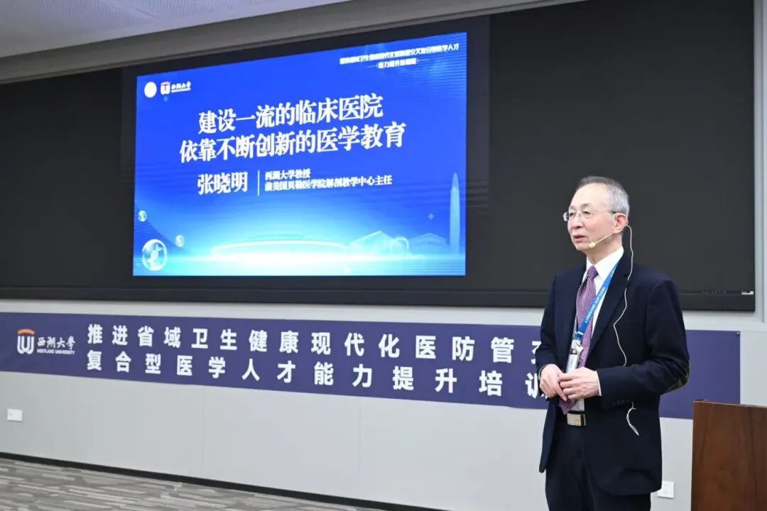 开班仪式结束后,西湖大学校长施一公首先以《前沿基础研究推动医药创新发展》为题,为学员们开启了此次培训课程的第一讲。他深刻阐述了原始创新对医学进步的驱动作用。郑家淮书记随后进行了《学习党的二十届四中全会精神,以党建引领公立医院高质量发展》的专题授课,深入浅出地为学员们指明了新时期公立医院如何在党建工作引领下明确发展方向。两场高水平的讲座为本次培训奠定了坚实的基础。